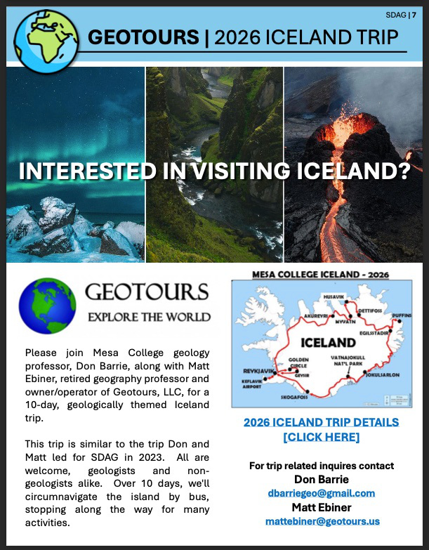 I have some exciting news to share! Please welcome, Mike Palmer, as our 2025 SDAG Vice President!! Also, copies of the 2nd printing of our 2025 SDAG Field Trip Guidebook
